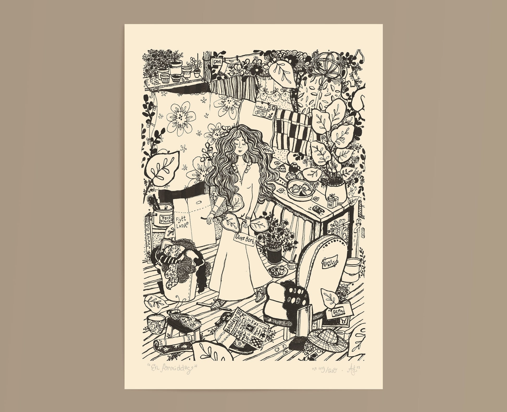 Limited-edition fine art print of an original hand-drawn ink collage. Produced as a high-quality giclée print for archival longevity.